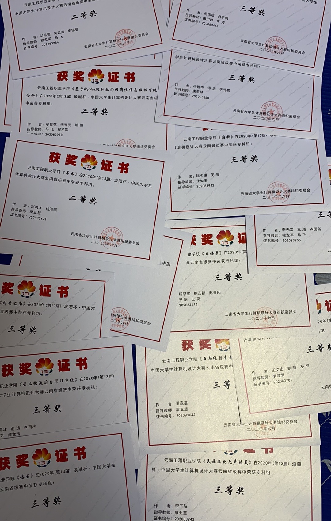 近年来学生获得金砖国家职业技能大赛“机器学习与大数据”赛项国赛三等奖;全国大学生华为ICT大赛云南省赛一等奖、二等奖、三等奖;新华三杯全国大学生数字技术大赛云南省赛二等奖和三等奖等;云南省学生职业技能大赛《大数据应用开发》三等奖;《物联网技术应用》二等奖、三等奖。
